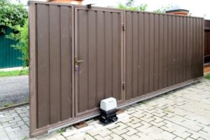 В первую очередь, сдвижные ворота с замонтированной калиткой предоставляют возможность человеку выходить за забор без каких-либо включений системного отката. Дверцу следует установить внутри сдвигаемых ворот в том случае, если нет возможности обустроить ее около них. Важно точно рассчитать местоположение калитки.Описание комплектующих для откатных ворот
